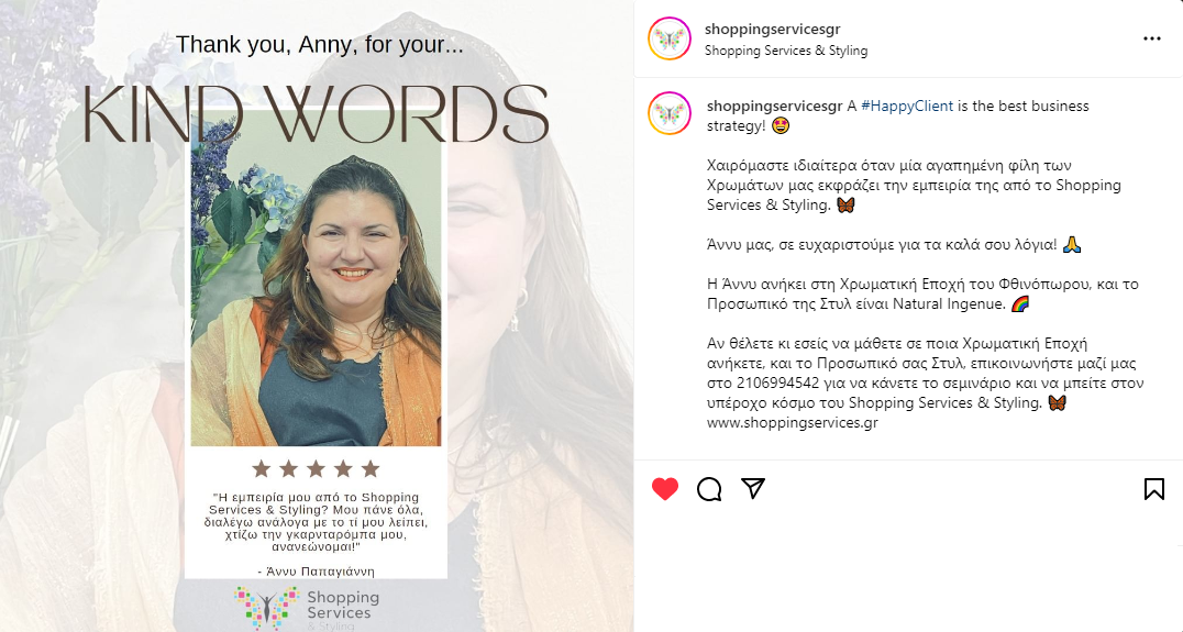 Συνεχίζουμε τη συνεργασία μας προσαρμόζοντας το περιεχόμενο και όλες τις digital ενέργειες σύμφωνα με τους νέους στόχους που θέτει κάθε τρίμηνο το brand. Φροντίζουμε η φωνή του brand να διατηρείται ξεκάθαρη και με σαφές μήνυμα σε κάθε ανάρτηση. Μας δίνει μεγάλη χαρά η μηνιαία αύξηση των πωλήσεων και η ανάπτυξη του community γύρω από το brand.