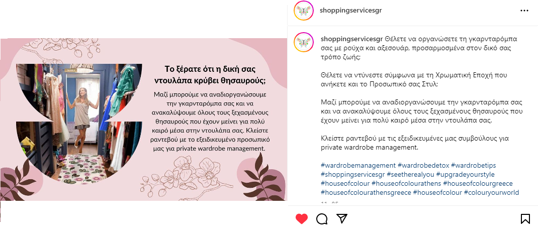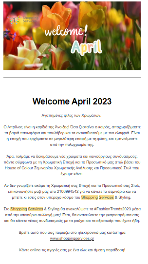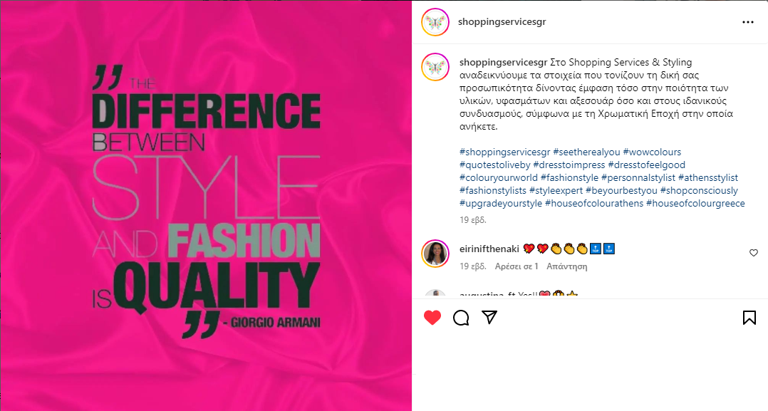 Από τον Νοέμβριο του 2022 μπήκαμε στον χώρο της μόδας ξεκινώντας τη συνεργασία μας με το Shopping Services & Styling. Στο πρώτο στάδιο της συνεργασίας επιμεληθήκαμε και βελτιώσαμε το website, το eshop, τα social media, και το newsletter, αυξάνοντας έτσι τον βαθμό έκθεσης και επισκεψιμότητας του brand καθώς και τις πωλήσεις. Επιμεληθήκαμε και τη βελτιστοποίηση του SEO στην Ελληνική και Αγγλική γλώσσα.